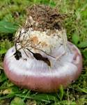 cm Ø, ockerbräunlich, rötlichbraun, rosabraun. Immer mit lila Ton, jung: schleimig, schmierig. Der Rand ist violett und