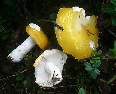 2-8 (11) cm Ø, gelb, chromgelb, zitronengelb, Haut feucht glänzend,