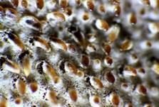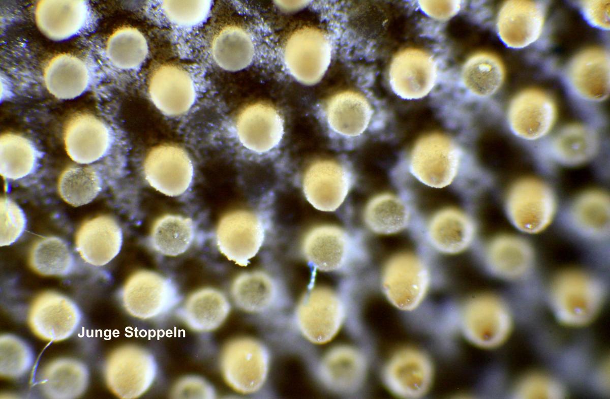 Weißsporstacheling mit weißem Sporenpulver. |