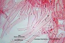 kahl, voll. Die Basis ist verdickt und manchmal etwas gilbend. |
