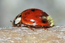 An lebenden und toten Marienkäfern entspringen, Myzel durchzieht das