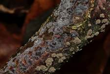 Auf Holzrinde von Laubholz, gern Hasel oder Erle, HYPOXYLON PORPHYREUM nur auf Eiche, Folgezersetzer, ganzjährig. |