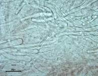hygrophan, Huthaut kahl, glatt, lange eingerollt. |
