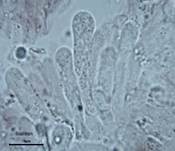 Sporenpulverresten am Stiel, Lavendelfarbener