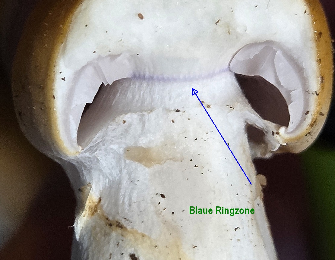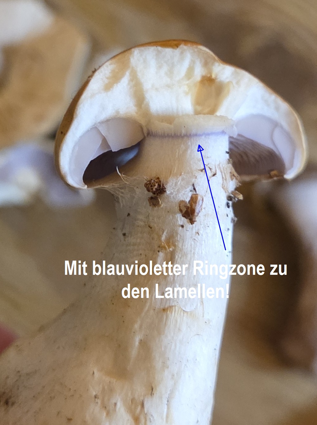 Stielspitze bleiben, wenn man den Hut abbricht, oft eine blauviolette