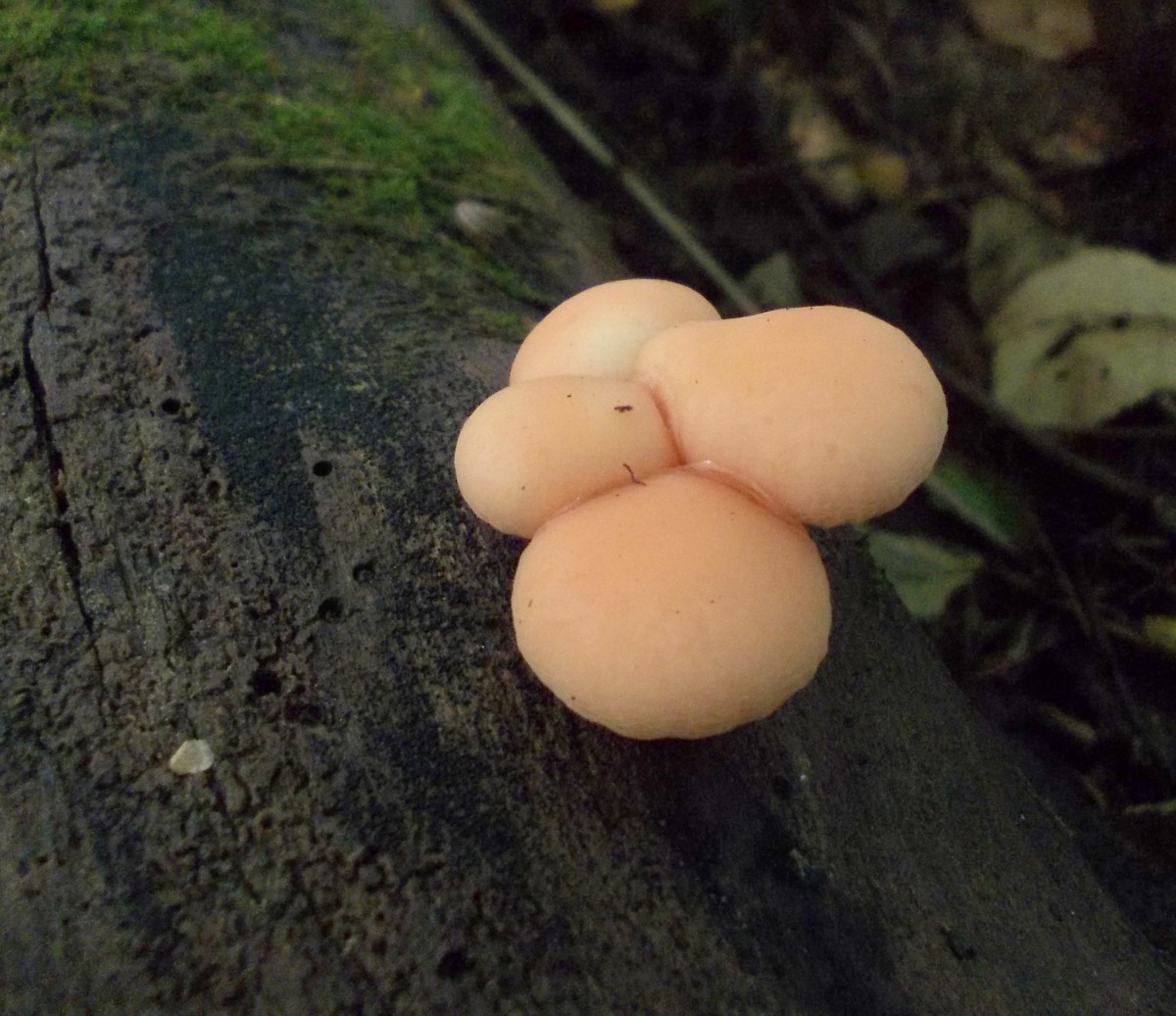 rosagrau, orangerosa, jung tropfend, büschelig zusammenwachsend, mittig oder