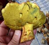 nur noch im Stielrandbereich zitronengelb verbleibend, fest, hart, blauend