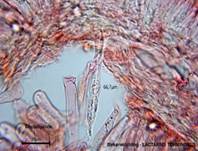 Hellgelb (8-10,2 x 5,8-6,6 μm). |