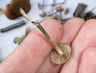 dunkler bräunlich und stark weißlich überfasert, Basis mit Myzel weißfilzig,