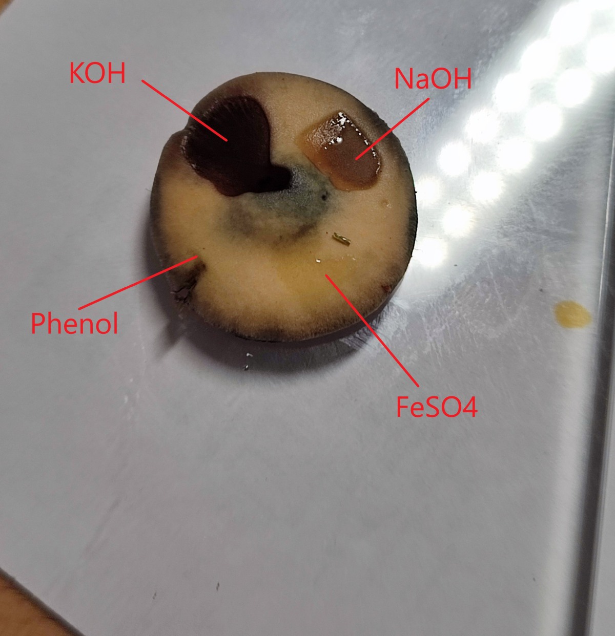 hellbraun bis hell gelbbraun verfärbend. Mit Phenol keine Verfärbung. |