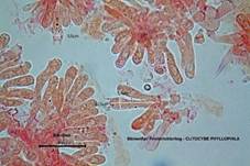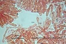 Schnallen. Hutdeckschicht ca. 1,5-5,5 µm breit, mit stark verflochtenen