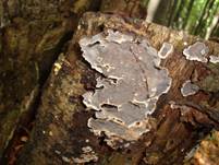 Nadelholzschichtpilz, Runzeliger Schichtpilz, Schmetterlingstramete. |