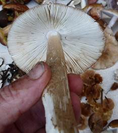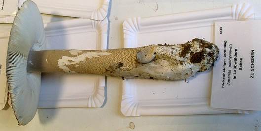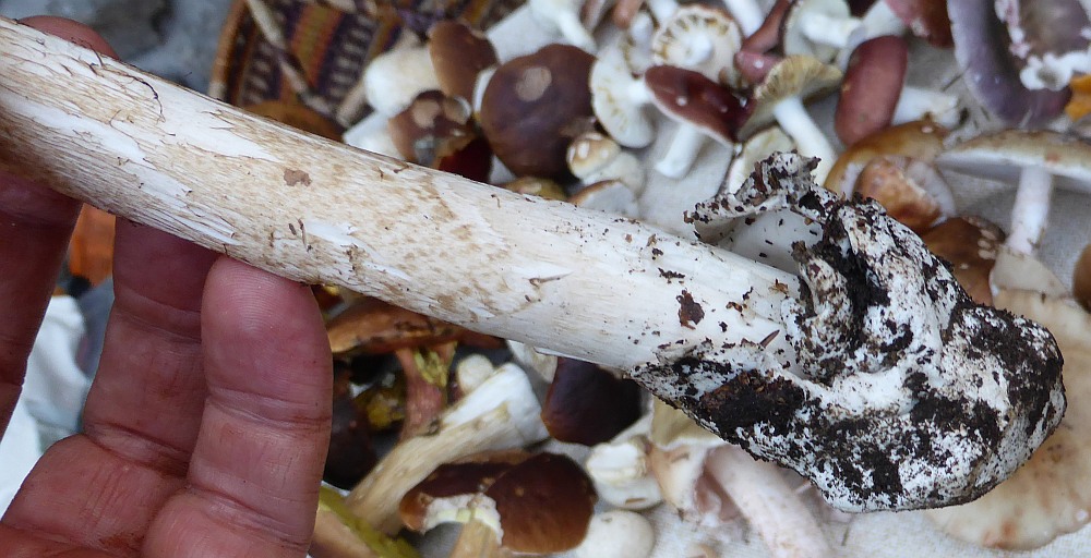dieser ist im Alter sehr stark am Hutrand gerieft und hat eine Knolle ohne
