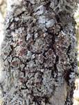 Auf der Borke (Rinde) von Laubbäumen, gern Eiche, Kirschbaum, Buche,