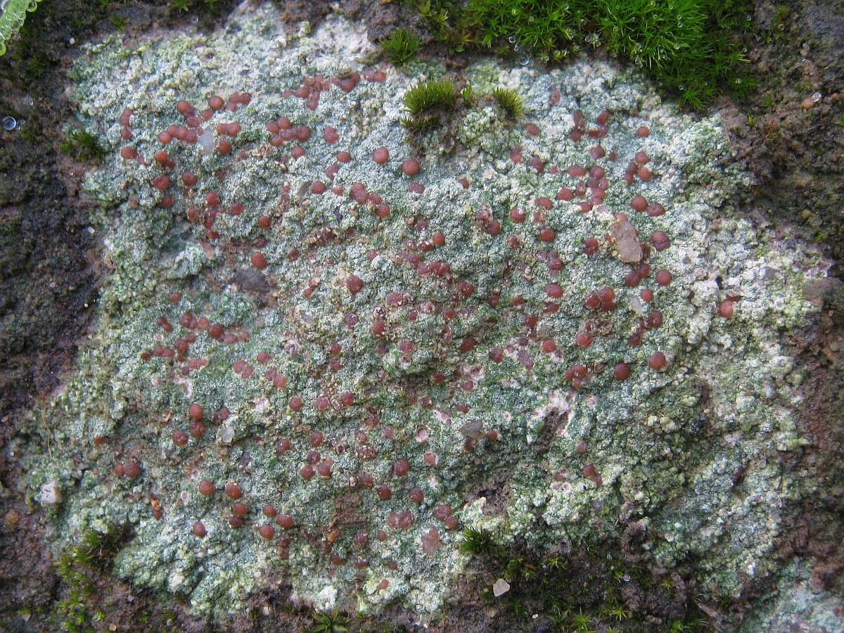 Trapelie, Braune Urschüsselflechte, Großfruchtige