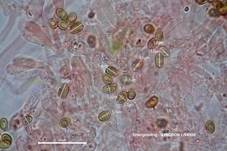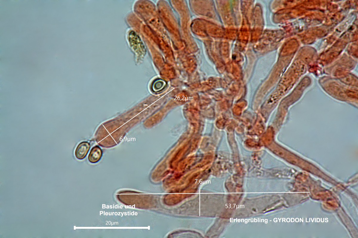 µm, elliptisch, in KOH braun. Basidien einsporig, seltener viersporig. Die
