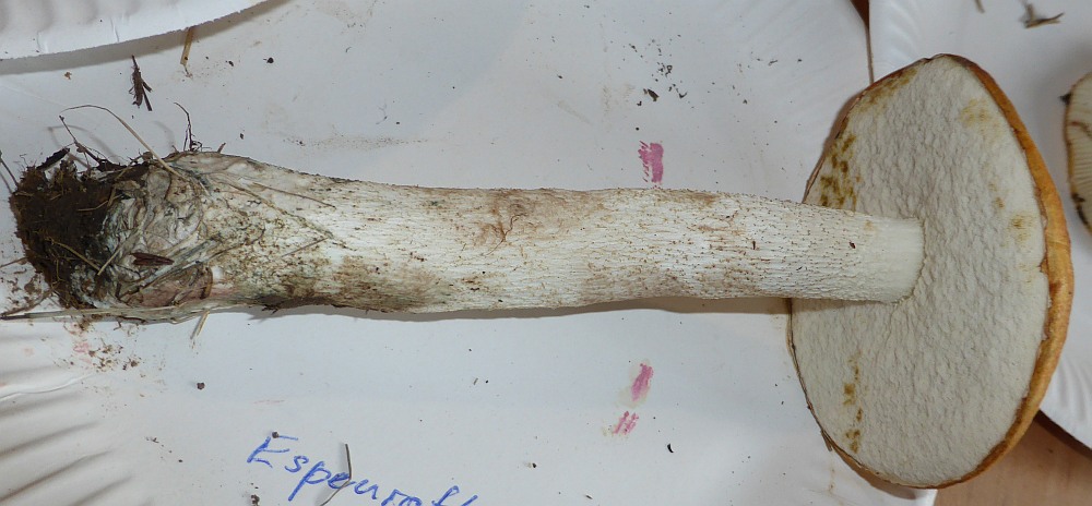 mit nicht überrolltem Hutrand und mit rötlichen Schüppchen am Stiel. |