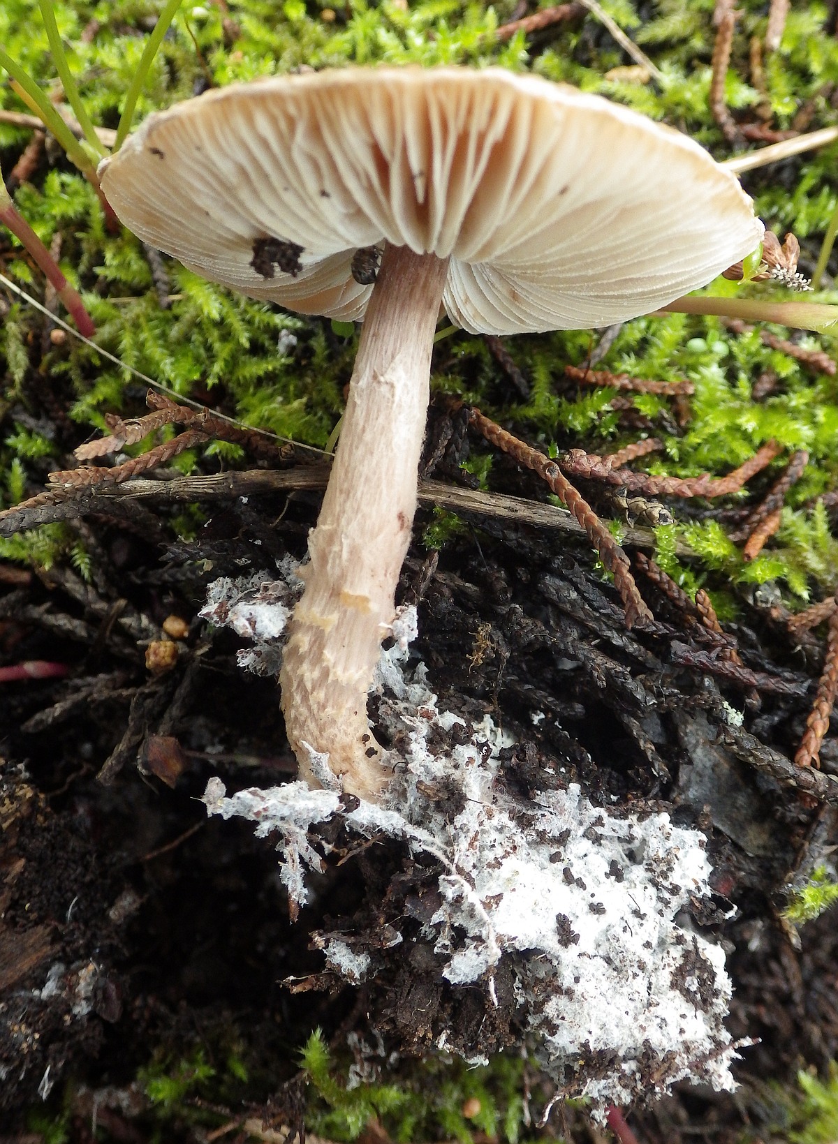 Stiel) ist mit dem Zartgefärbter Schirmling (mit weniger rosalichem und mehr bräunlichem