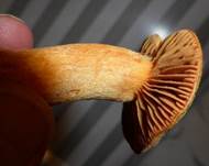 Gelborange, rotbraun, etwas herablaufend, nicht so stark wie beim Kupferroten Gelbfuß