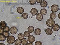 (8-9,2 µm, rundlich, minutiös feinwarzig, das Capillitium bestehend aus