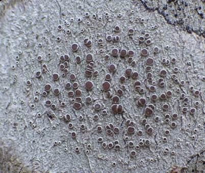 Krustenflechte, Braunscheibige Krustenflechte, Becher-Krustenflechte. |