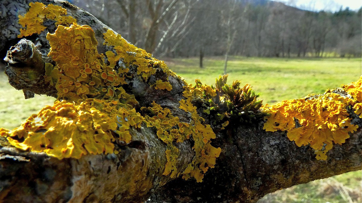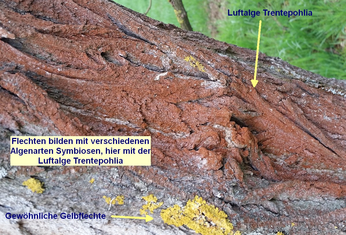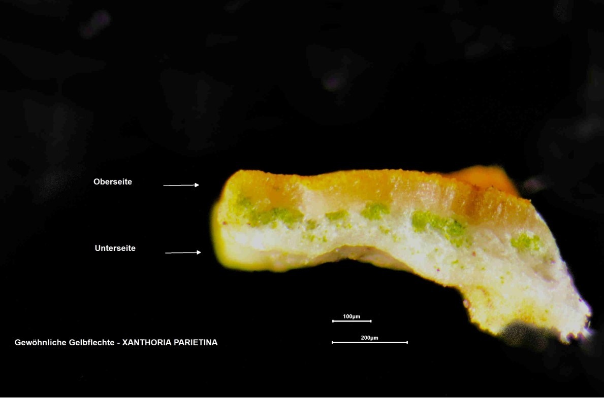 die Flechte ist eine Lebensgemeinschaft aus Pilz und Alge, welches die