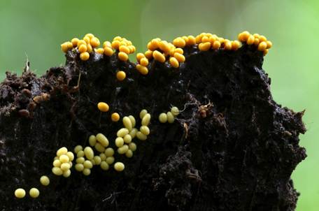 Neststäubling, Gelber Schleimpilz,