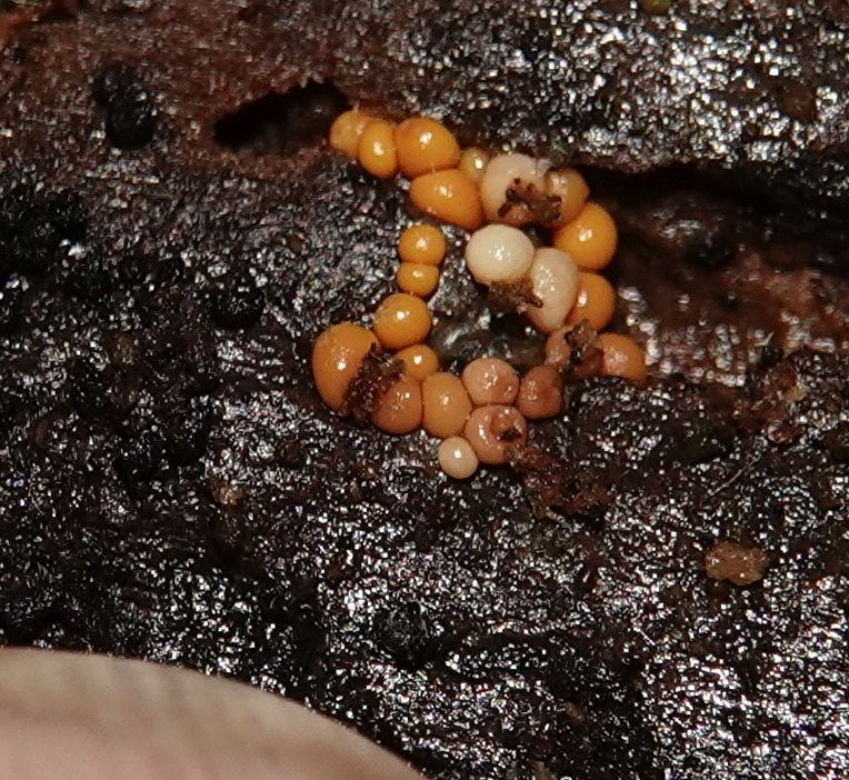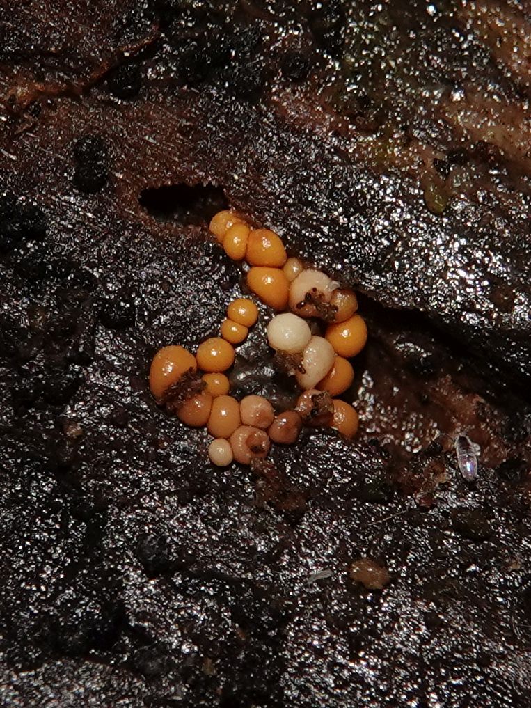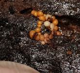 Ameiseneier, später gelborange bis rotgelb. |