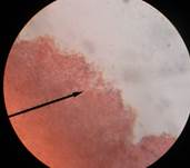 Weißlich, feucht schmutzig ockerlich, zäh, dünn, nicht gelatinös. |