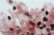 Schwarz (6,5-12,5 x 4-7 μm, Cheilozystiden 22-150 x 16-65 μm,