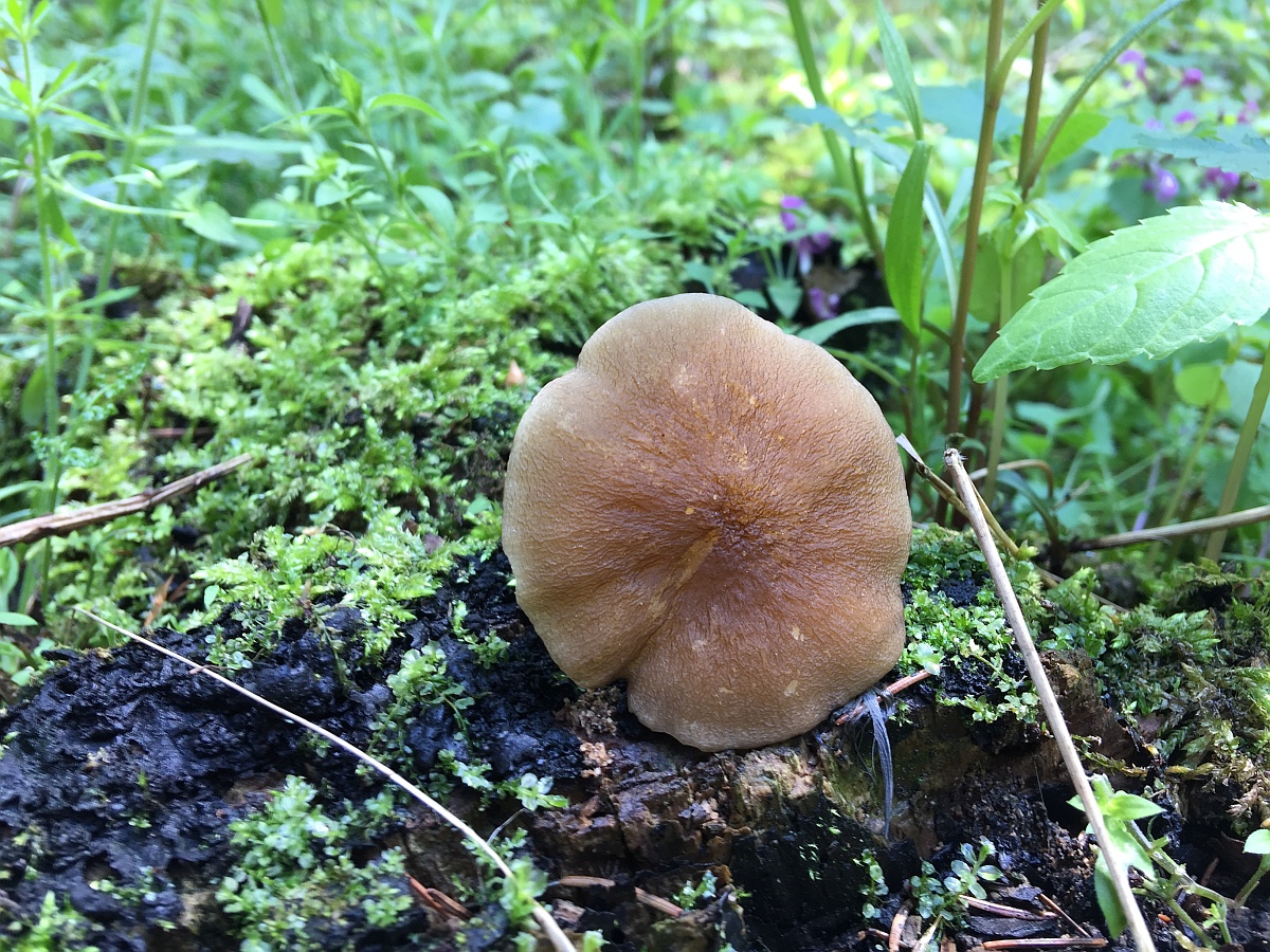 Mischwald, gern Auwald, auf vermodertem Laubholz, Stümpfe,