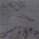 Graubraun, bräunlich überfasert auf hellerem Grund, faserig, dünn, alt