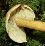rostbraun, dünnfleischig, am Rand oft mit flockig-gelblichem Saum