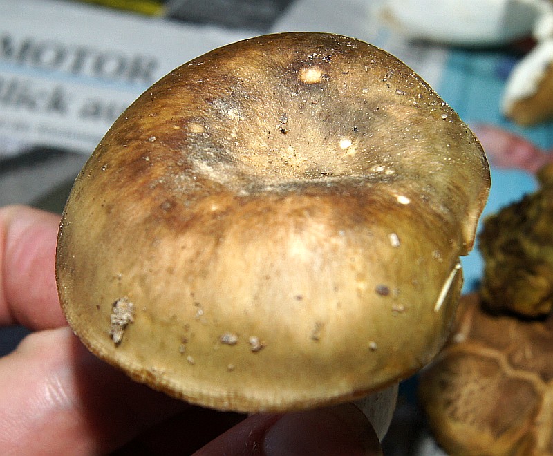 vermischt, feucht: etwas schmierig. Hutmitte im Alter oft etwas dunkler,