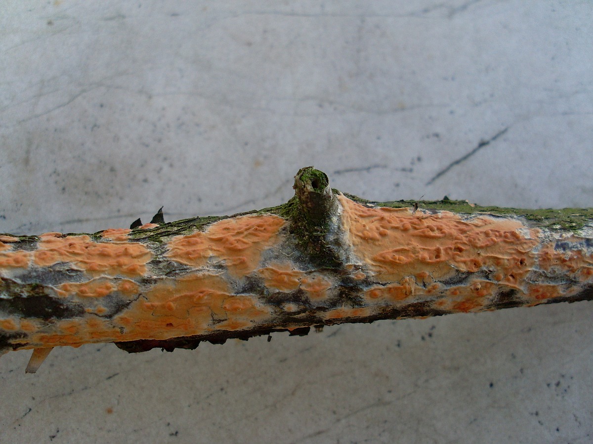 Grünerlen-Zystidenrindenpilz, Erlenrindenpilz, Orangeroter