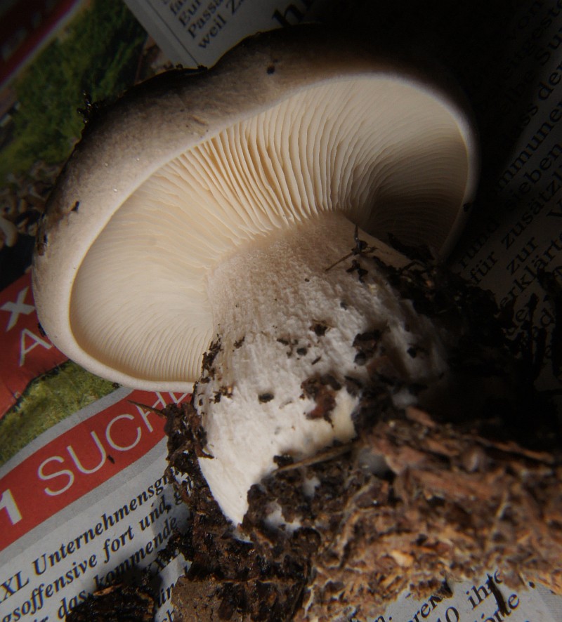 4-20 (25) cm Ø, graubraun, weißgrau, etwas radialfaserig. Haut glatt,