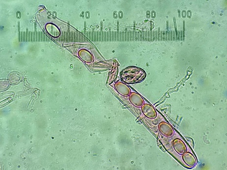 Weiß (16-20 x 10-12 µm, elliptisch, hyalin, Asci
