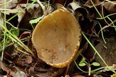 graubraun, dunkelbraun, selten rotbraun, kelch- oder becherförmig, mit