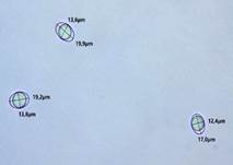 grauweiß, jung transparent (16-20 x 11-14 μm, mit einem zentralen