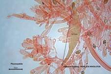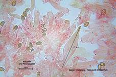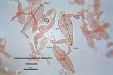 oval, glatt, Pleurozystiden und Cheilozystiden ca. 40-90 µm lang, meist
