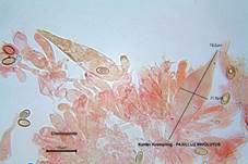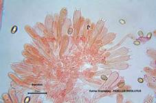 fusoid, Schnallen vorhanden, Pileipellis ca. 3-6 µm breit mit bräunlichem