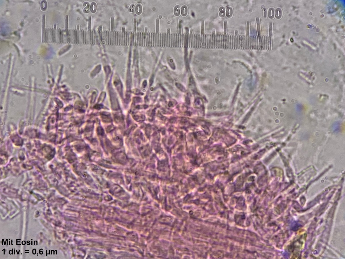 leicht gekrümmt, sehr dünn und glattwandig, hyalin. Perithecial-Wand 12-15