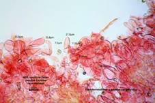 heller, zur Basis dunkler rotbraun, brüchig, hohl. |