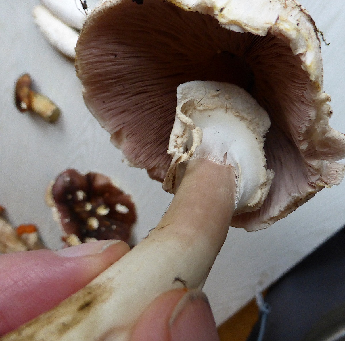 hängendem, teils vergänglichem Ring. Spitze ist leicht vom Hutfleisch