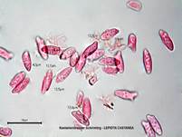 und gespornt, lang-elliptisch, dextroid, Q = 2,7. Cheilozystiden 28-32 x 5-8 µm, utriform, zylindrisch