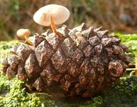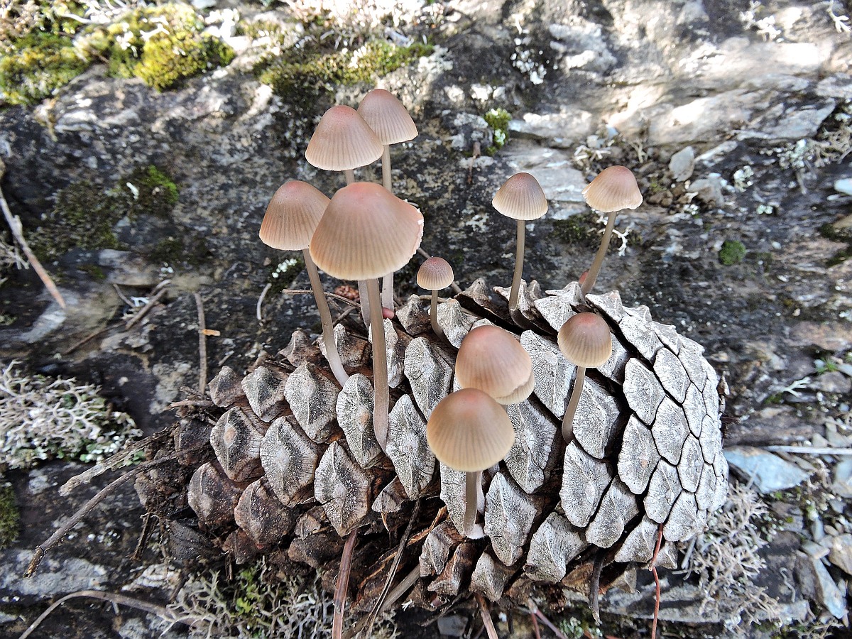 auf Fichtenzapfen, Voreilender Nitrathelmling, Fichtenzapfenrübling,