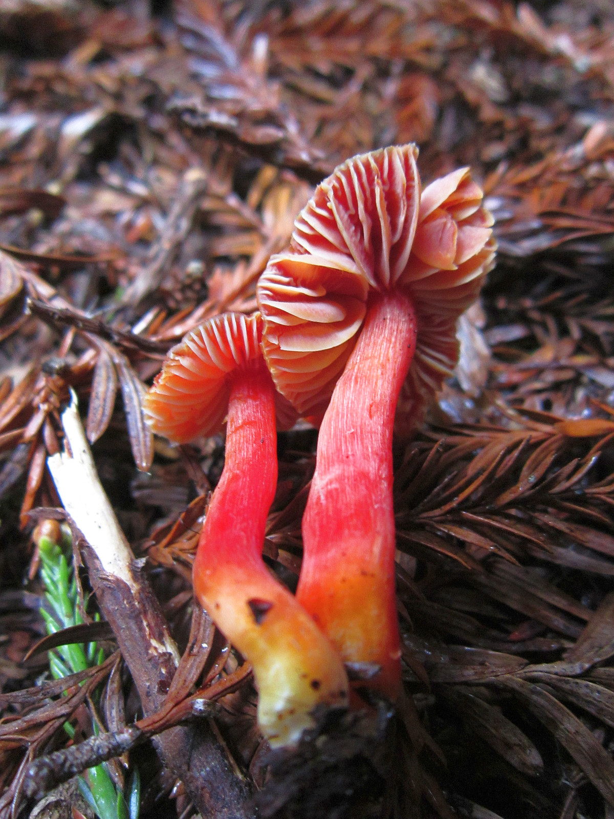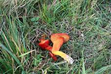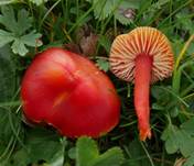 AGARICUS AURANTIOCROCATUS VAR. MINOR, HYGROCYBE MINIATA VAR. COCCINEA HYGROCYBE