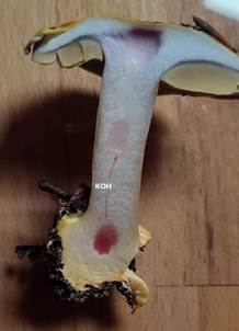 KOH an Hut- und Knollenrand blutrot, rosa bis rötlich im Fleisch. |