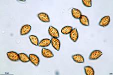 Rostbraun (9-11,5 x 5,5-7 µm, zitronenförmig = limoniform,