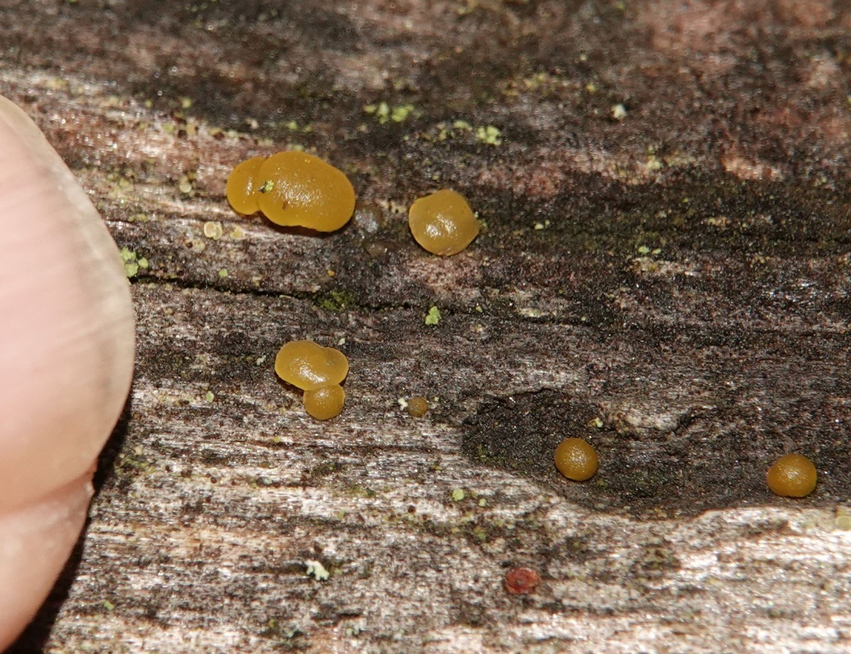 gallertartig, weich, durchscheinend, jung pustelförmig bis knopfförmig,